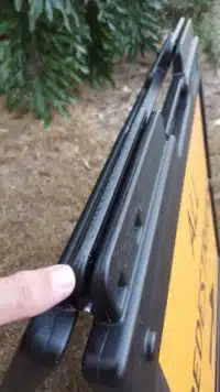 Commonly, plastic a frame sandwich board type stands have the ability of weighting the feet by means of adding sand or water as ballast internally.