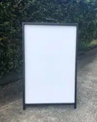 A-Frame Sign Stands, both plastic and metal are ideal for message and advertising display. A-Frame Sign Stands from the very small to the large have various methods of attaching a message. Indeed, some have recesses that a sign board can slide into. On the other hand, other A frames need to have a vinyl sign adhered to the surface.