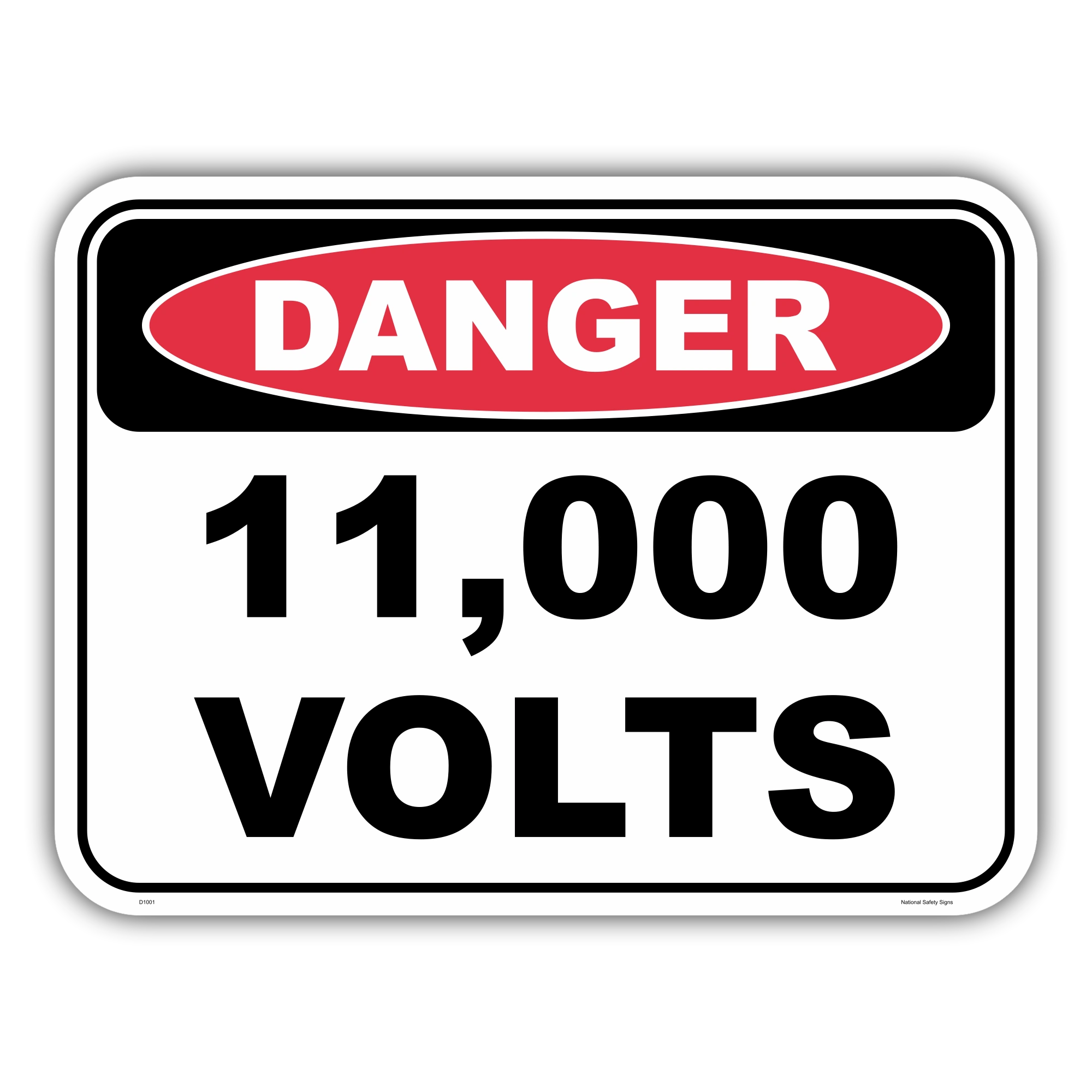 11000 VOLTS sign warns of the dangers associated with high voltage situations. 11000 VOLTS sign manufactured on the Gold Coast and shipped Australia wide.
