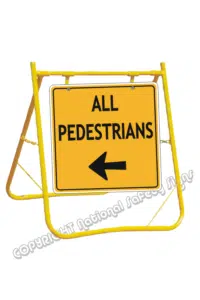 Pedestrians Use Other Footpath sign with stand, easily erected and lightweight. Indeed, these swing stands are a great addition to any business. Furthermore, we have them for every sign you can imagine. Also, we sell the pedestrian direction arrow signs and stands as well. See that one HERE you can also see all the pedestrian signs HERE.