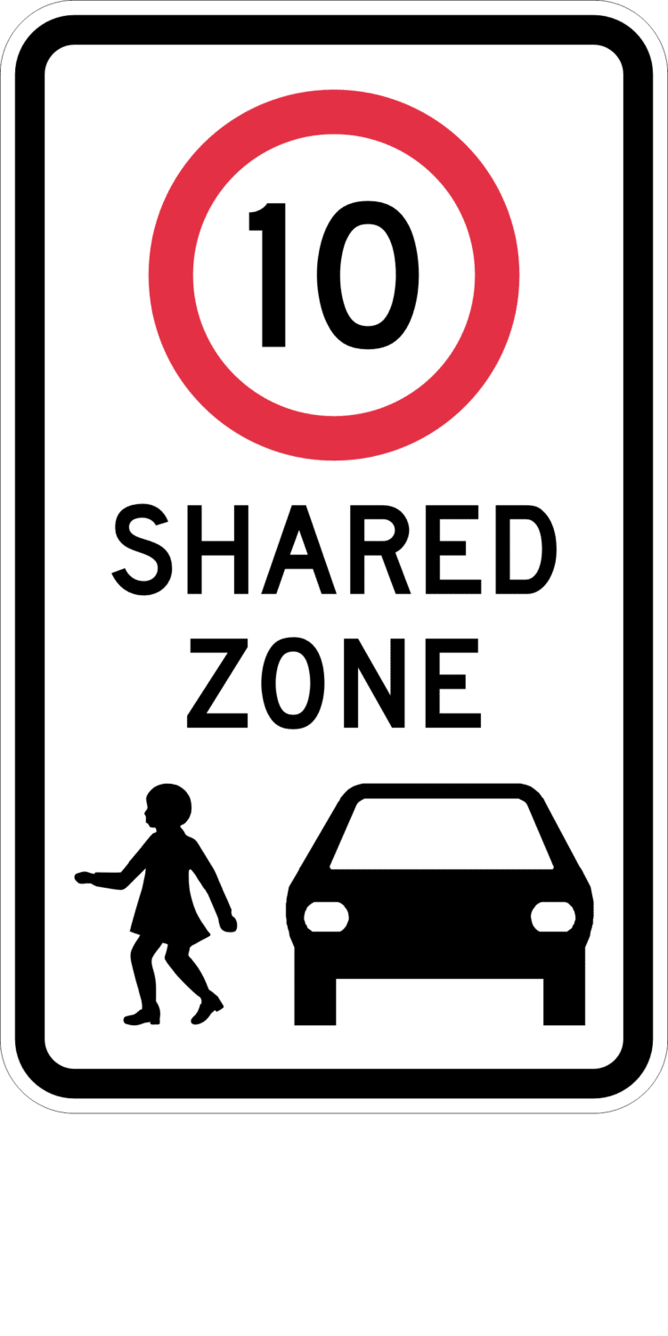 Shared Zone Class 1 Reflective sign, 450mm x 750mm with Over-laminate. Use Custom Text Field to advise required speed.