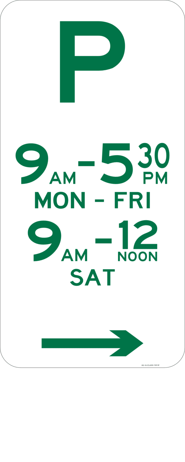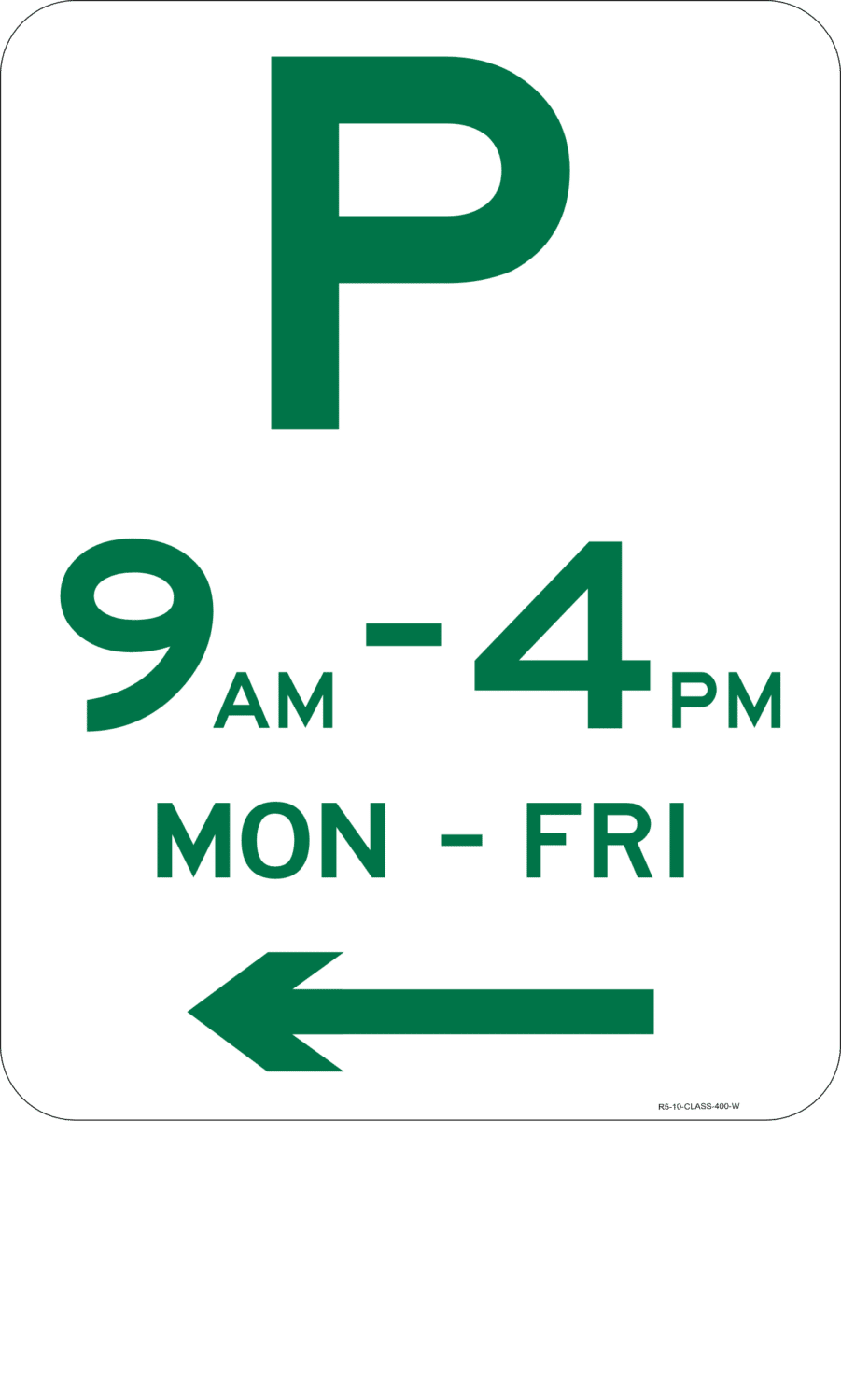 Parking No Duration available in Non Reflective and Class 1 reflective, with Over-laminate.
