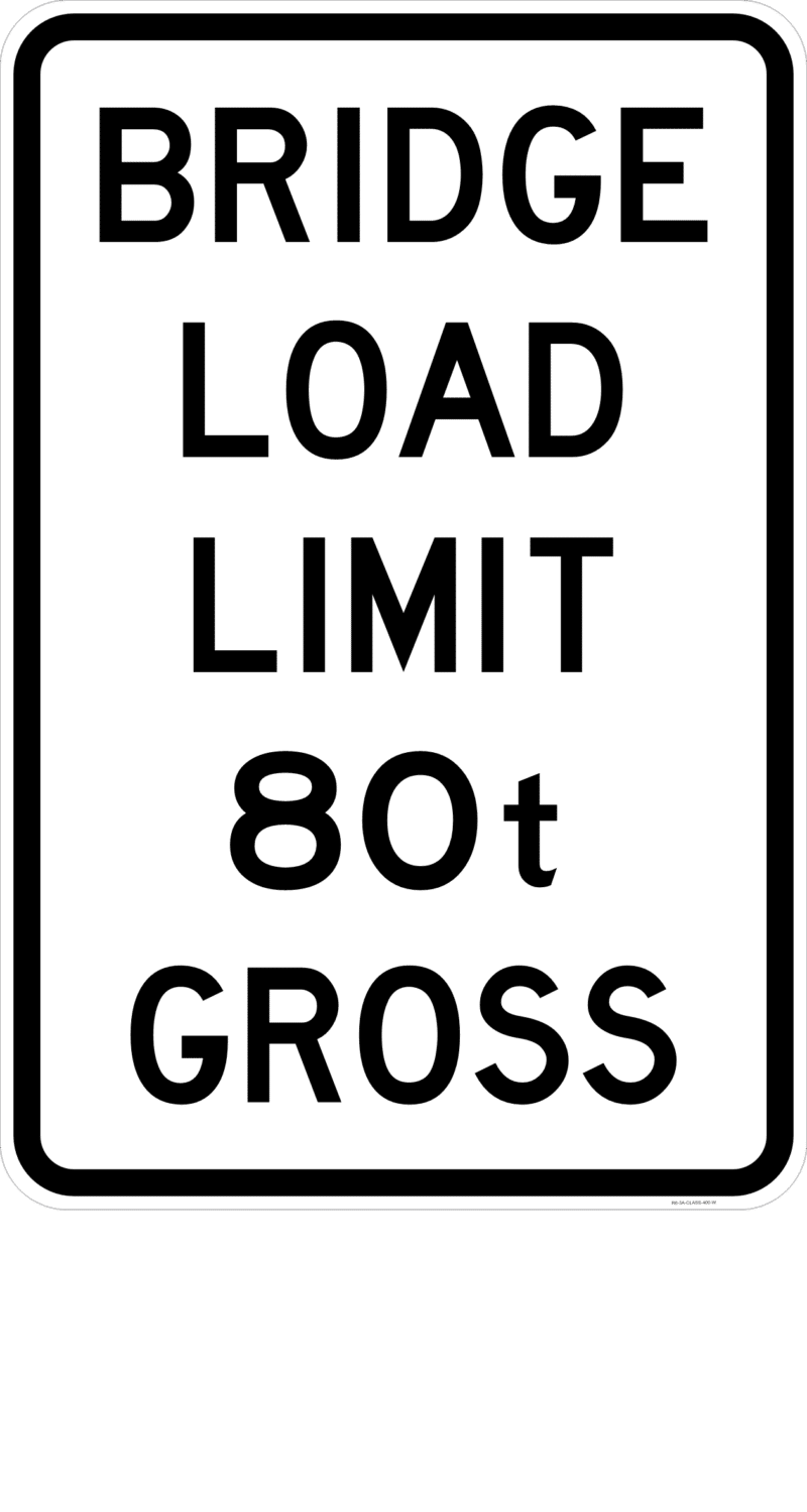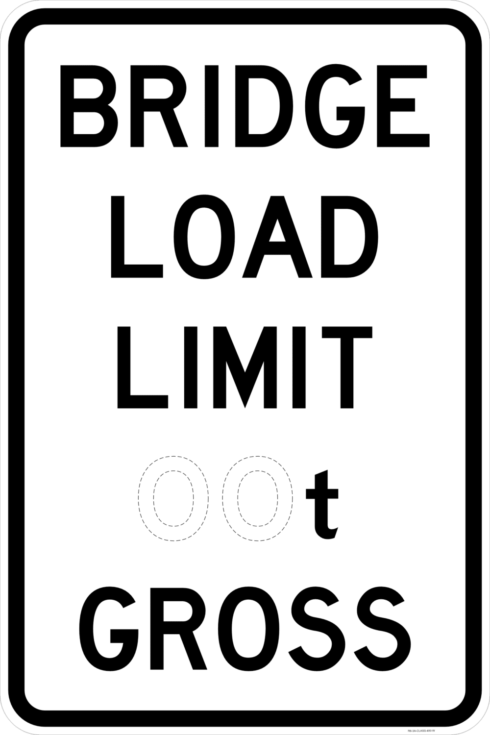Bridge Load Limit __ t Gross Class 1 Reflective sign, 600mm x 900mm with Over-laminate. Use Custom Text Field to advise weight.