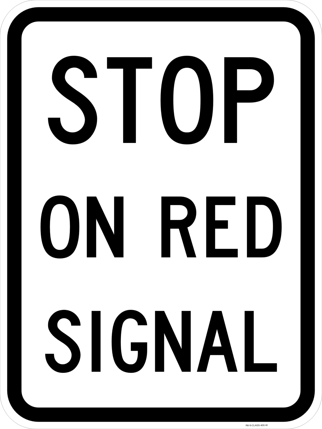 Stop On Red Signal Class 1 Reflective sign, with Over-laminate, 450mm x 600mm.