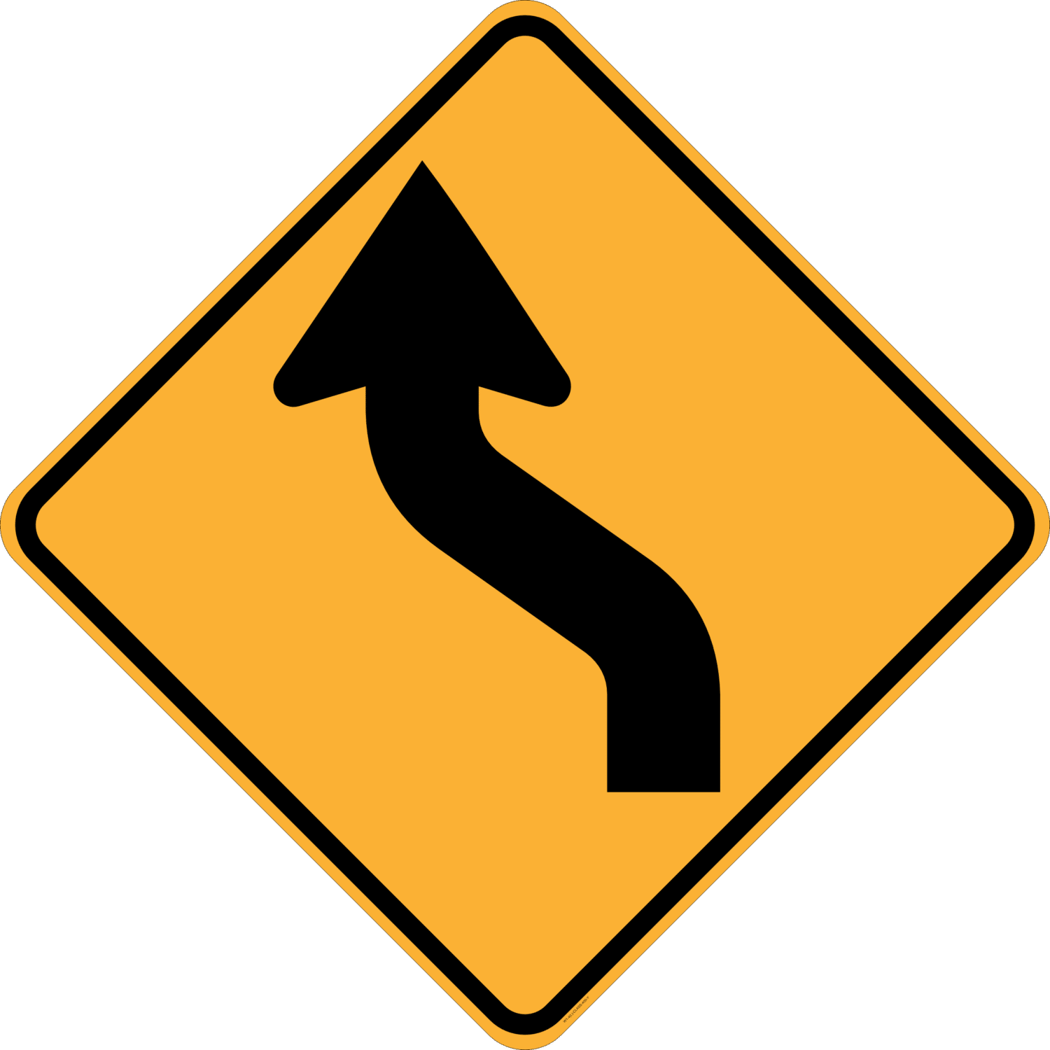 Reverse Curve – Left Class 1 Reflective sign, with Over-laminate.