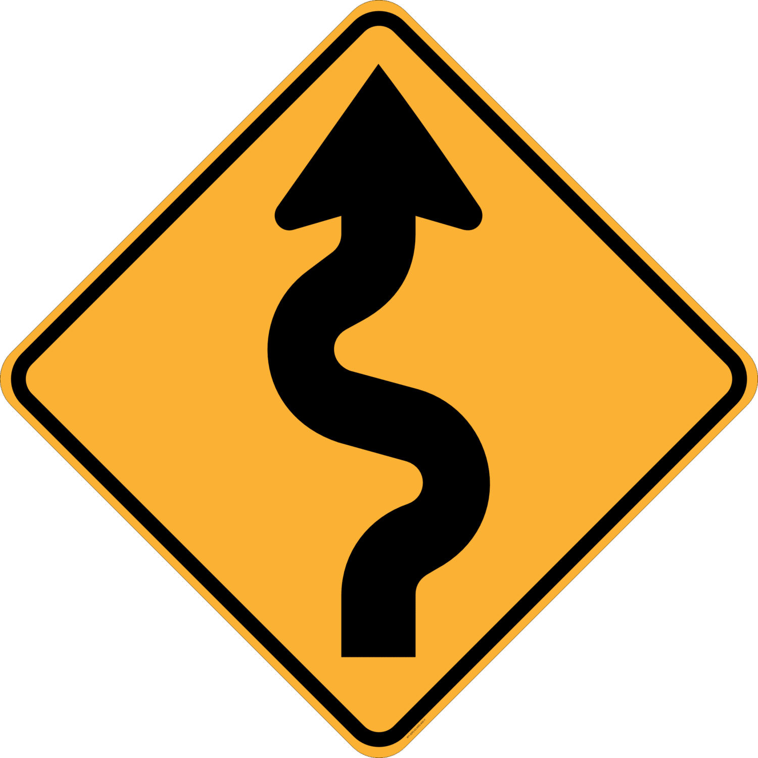 Winding Road – Right Class 1 Reflective sign, with Over-laminate.