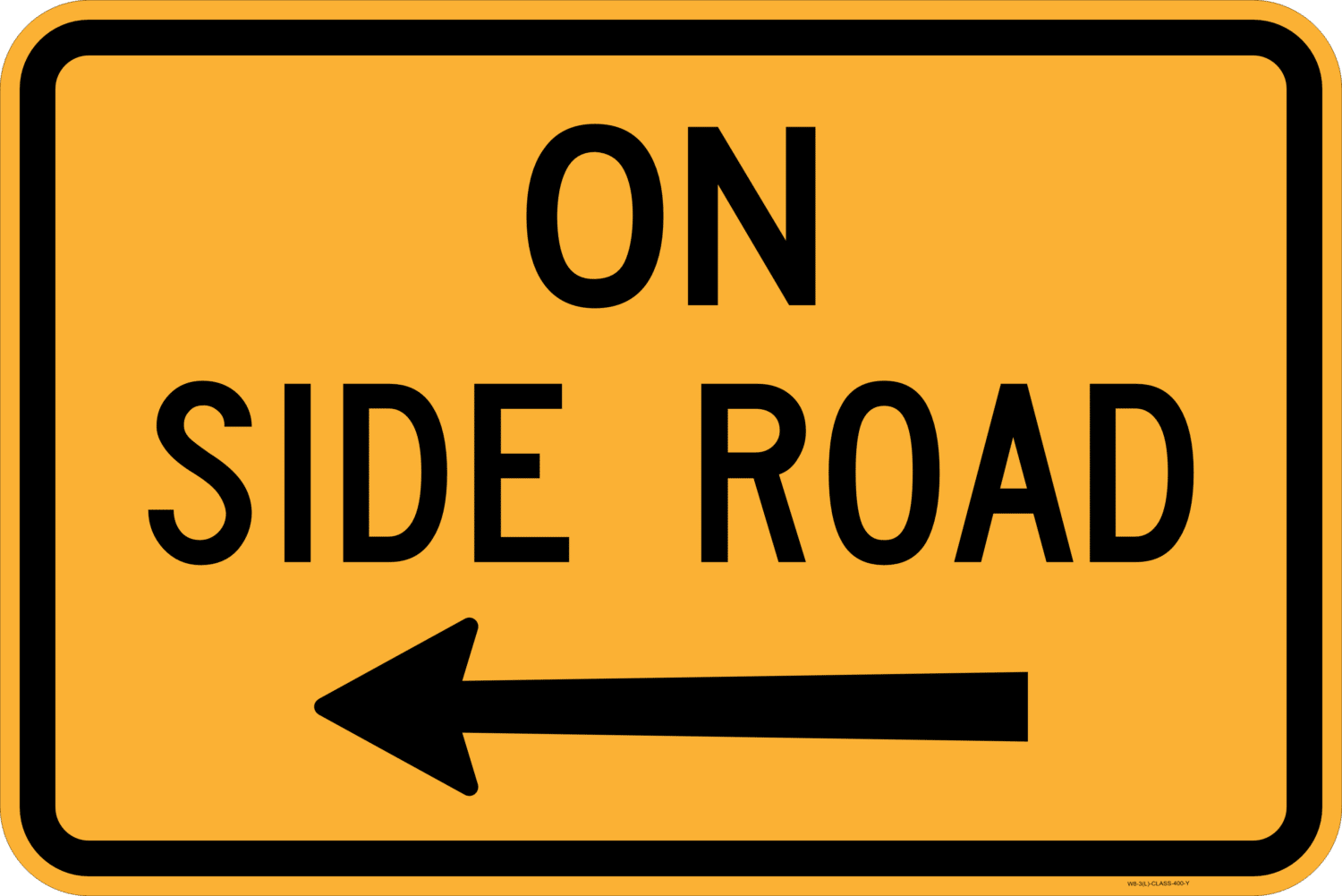 On Side Road (left) Class 1 Reflective sign, with Over-laminate.