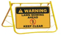 All our signs are made in Australia, by…US ! Which means, if you have a special sign you need made up, even with your Logo on it, we can do it. Either go to the design a sign page HERE or contact us here or phone 07 5665 8996.Sign with Stand is Aluminium and the frame is  powder coated yellow steel. Contact us for pricing on bulk orders.