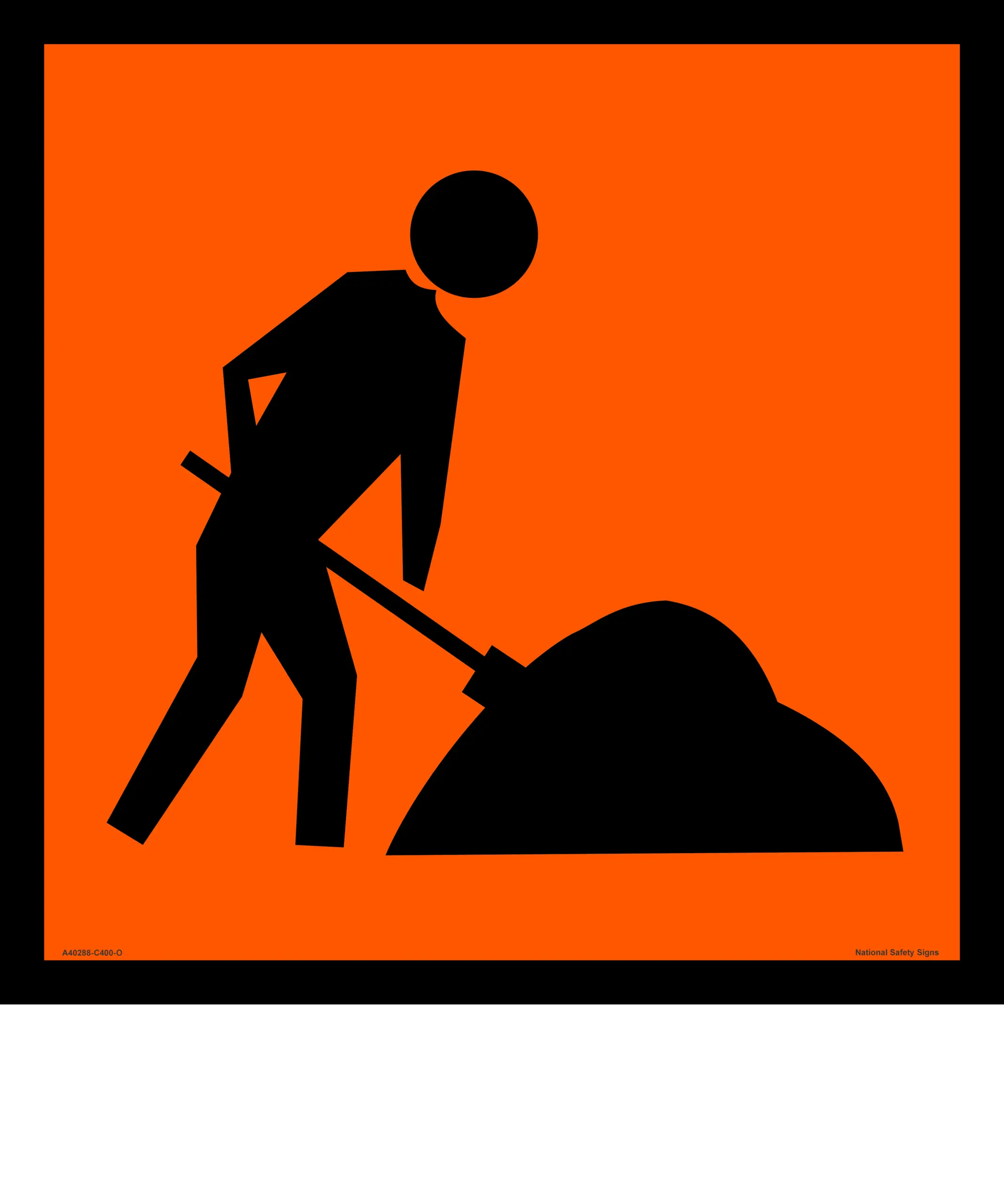 Fluro Orange 1.6mm Aluminium Workmen Ahead Sign and Gal Stand.